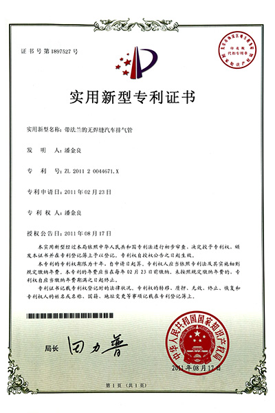 帶法蘭的無焊縫汽車排氣管專利